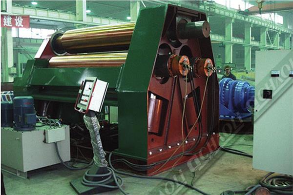 W11H三輥弧線下調式卷板機是引進瑞典先進技術而生產(chǎn)的。能將金屬板料一次上料,不需調頭即可完成板料端部預彎和卷制成形,機器三個工作輥均為主驅動輥。升降位移計算機控制,自動調平,屏幕顯示翻轉軸承體(倒頭)裝有傾倒油缸。